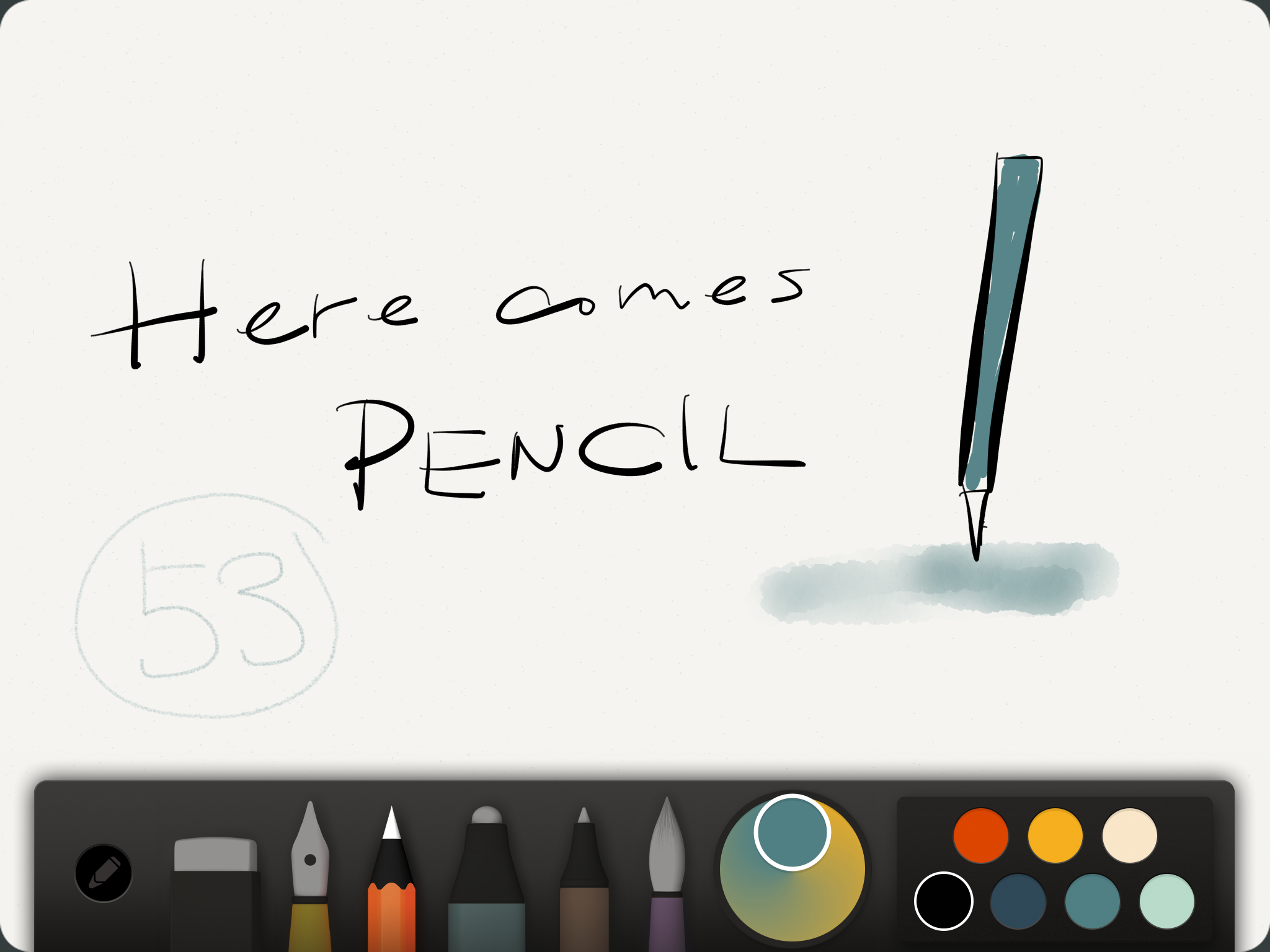 你可以选用解锁的几种粗细不同的笔刷写写画画。细钢笔和细铅笔都很适合书写文字,它可以作为另外一种形式的笔记本,不过在这上面所画的笔记完全是图片格式,而无法做文字识别。钢笔工具跟真正的用笔写出来的字效果不太一样,会有更加黏连的笔顺,一般来说会让你的字显得更加好看一点。如果你之前曾经用手指尖在Paper上面写字的话,感觉也是差不多的,但很显然拿着一支笔来写可以更好的定位。