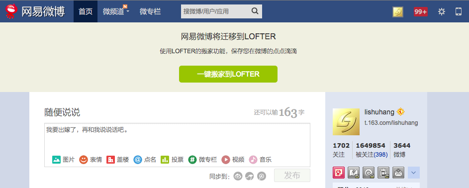 如今网易微博就要关闭了,它的资料会被文艺青年LOFTER全盘接收。在它关闭之前的一刻,我终于弄明白了小易的性别——