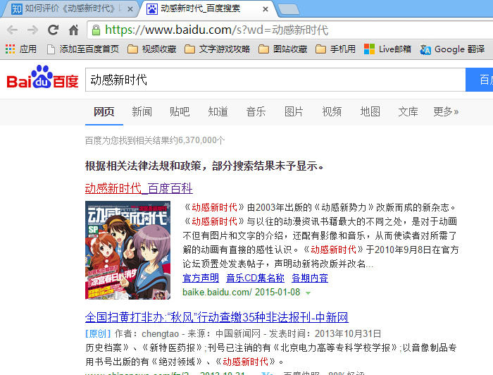 有网友在网上搜索“动感新时代”的关键字,发现多了一行“部分搜索结果未予显示”。“我不知道为什么搜索一本动漫杂志也会有如此待遇”,他这样说道。但是眼尖的网友看出,在搜索结果的第二项就已经给出了答案。