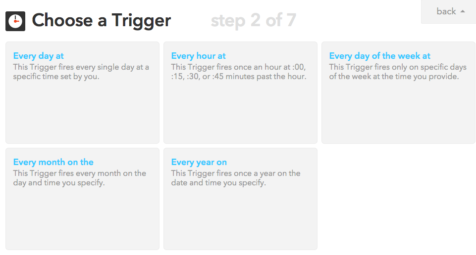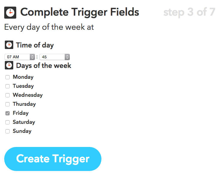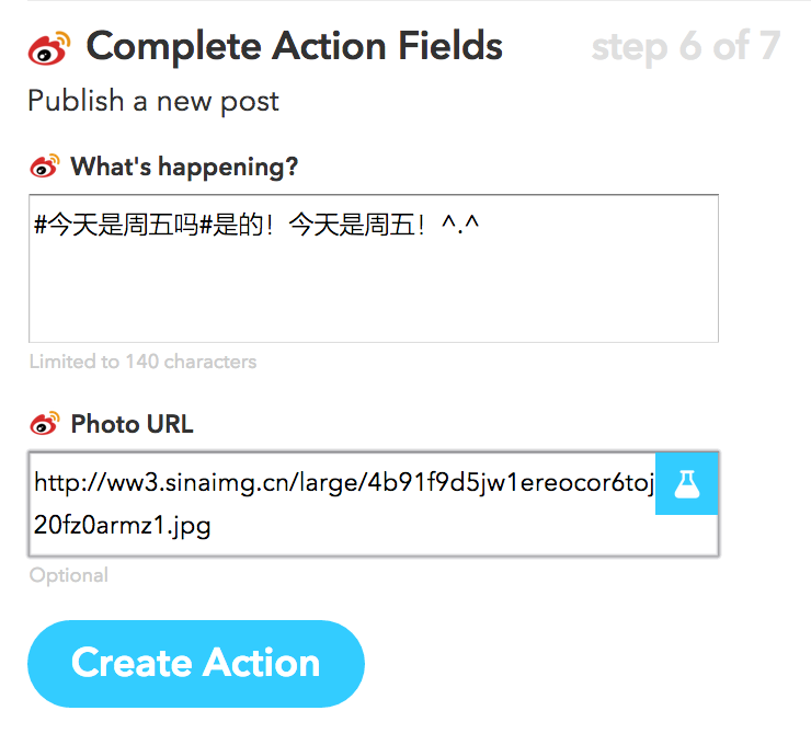 你还可以把做好的触发条件发布(Publish)出来,比如为了大家方便,我就发布了我刚做好的这个条件。 点这里就可以一键用在你自己的微博上了 。它可以让你在每周五早晨发布一条带有萌猫图片的微博提醒大家今天是星期五。