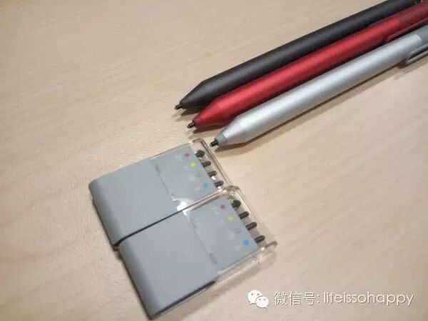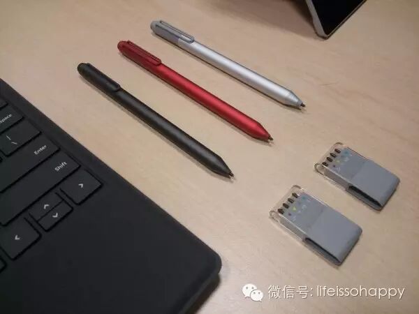 这次微软会在中国大陆发售一共4种不同颜色——黑、蓝、亮蓝、红(蓝绿色不在中国销售)的键盘盖和触控笔,每个触控笔还有4种不同粗细的笔芯可以替换。应该说可以多种选择的配件还是显示出了微软的诚意。键盘盖售价988,触控笔售价448,触控笔替换笔芯的售价是一套98。