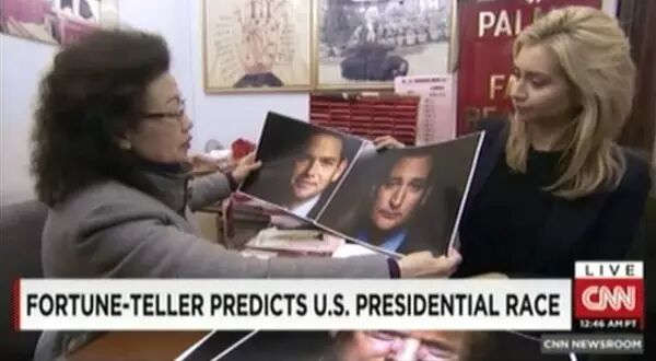 CNN请了一个香港的算命先生给总统候选人算生辰八字。这位神棍表示:“他(川普)的火比希拉里旺。”