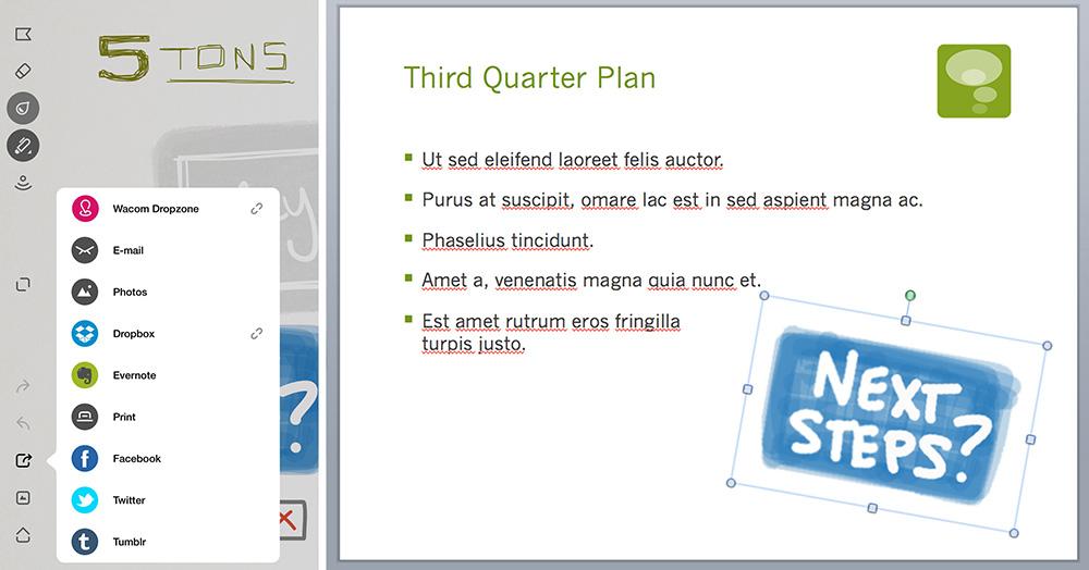 在图表绘制方面,不管是微软官方的iPad版PowerPoint,还是使用著名的绘图软件Paper by Fiftythree,手绘的效果都会让你爱上这种全新的表达方式。在PowerPoint,创作饼图的最新方式是用手指在屏幕上画一个圆(不用担心画不圆),然后拉开分屏,把一个Excel表格拖进去。而Paper更新以后加入了一个直尺功能,随手画出来的线条会由机器自动匹配,变成一条笔直的直线,整体的效果就好看了不少。