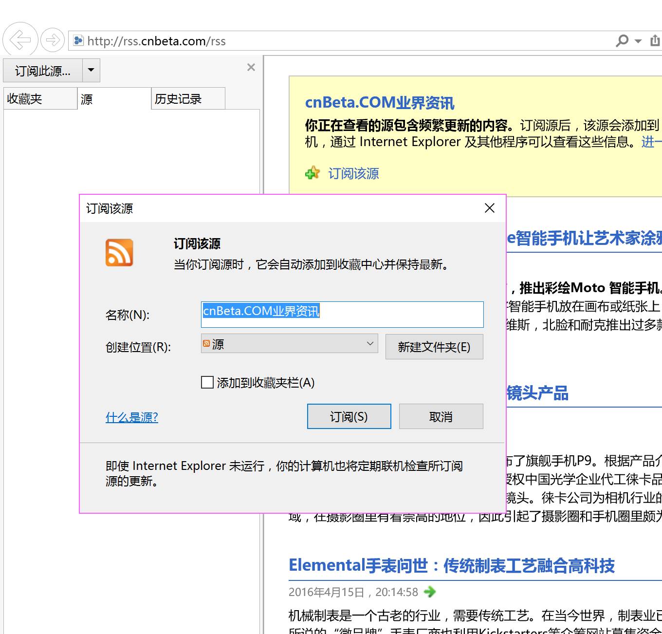 在 Windows 下,IE 自带 RSS 订阅功能。Edge 暂时不支持 RSS 阅读;不过你可以选择第三方浏览器比如傲游。