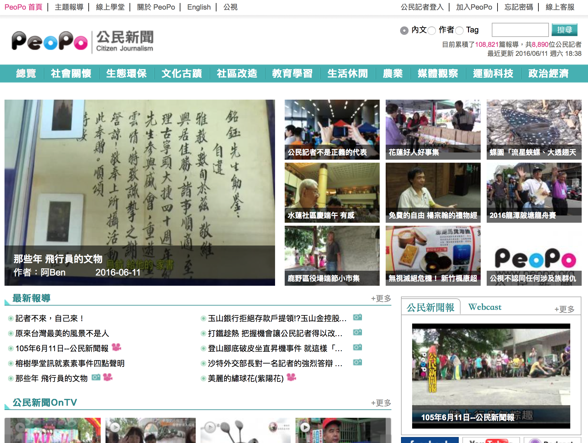 “公视”是台湾唯一的公营媒体,其公民新闻平台PeoPo在2007年4月30日成立,主要目的也是全世界公营媒体共同的初衷——做商业媒体不感兴趣的报道,为弱势群体,少数族裔,原住民等利益发声,希望争取社会关注。2015年2月,全球公营媒体联盟(Public Media Alliance)专门报道了PeoPo服务台湾社会的成功经验。