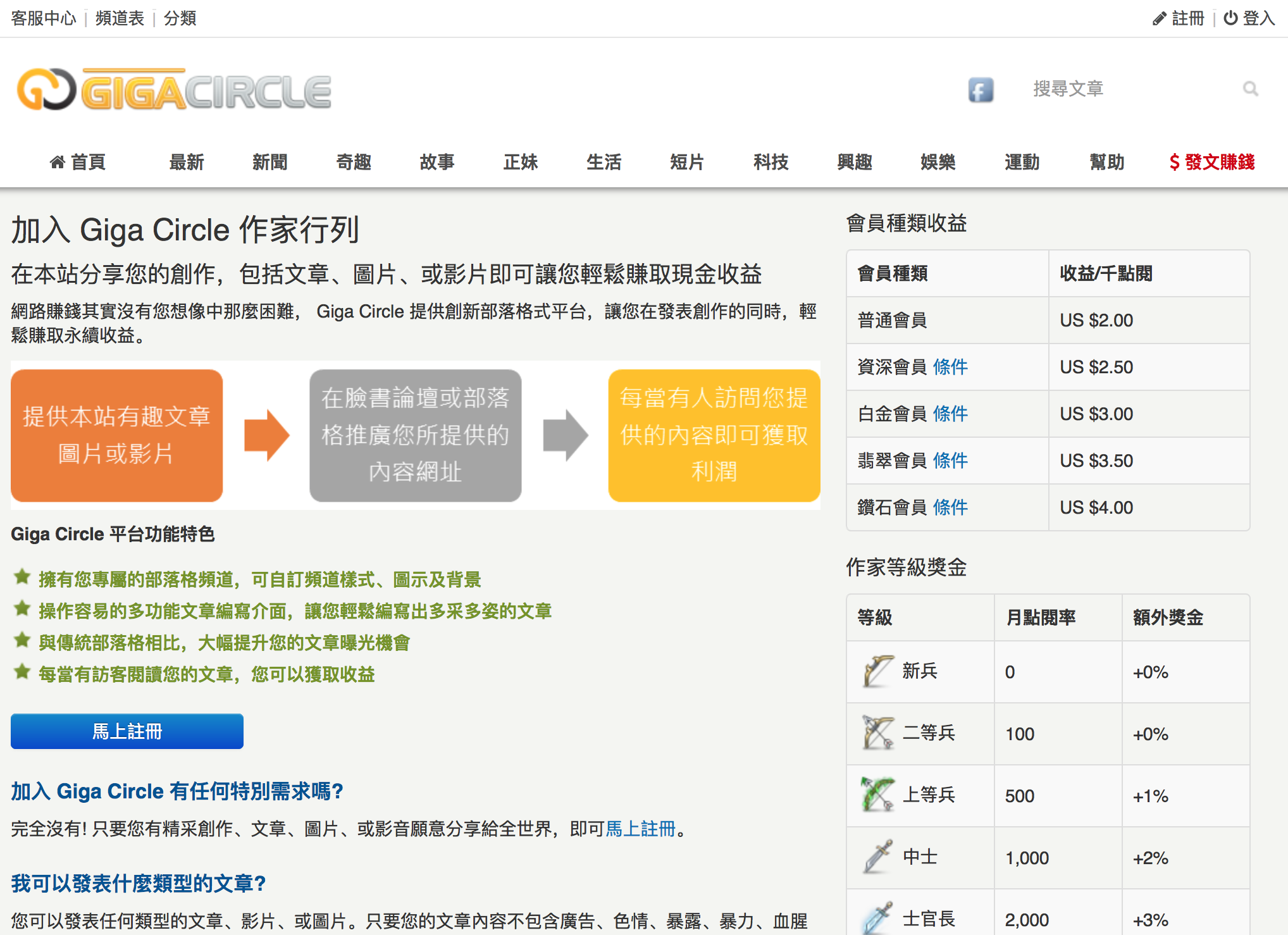 在读者喜好方面,“内容农场”与“流量工厂”纷纷通过关键字分析产生大量虚假文章创造流量,骗取搜索引擎的广告分成。台湾的内容农场Giga circle,以类似传销的形式吸引下线转发文章促进点击,每月从Google Adsense赚到800万元新台币,但只需要区区2名员工分走。这是大媒体都不得不正视的巨大力量。