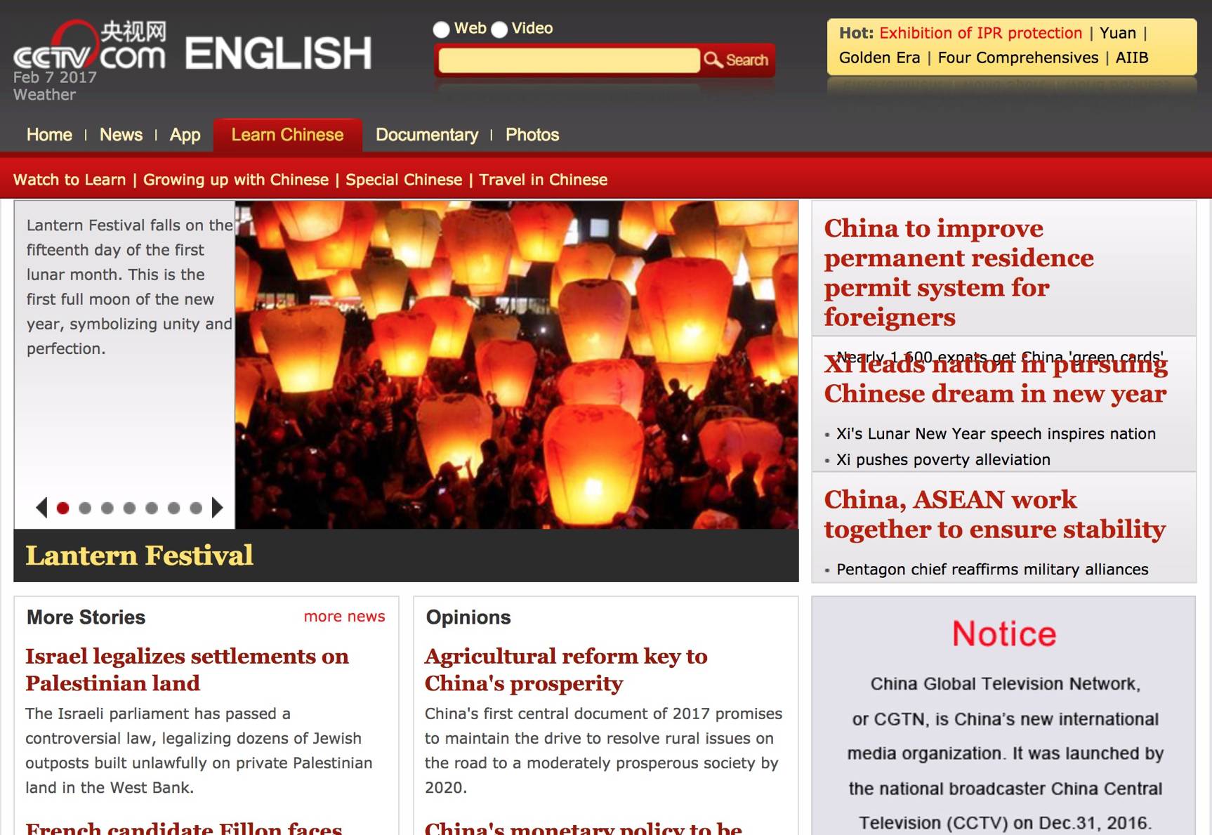 (2月7日,本应停止更新的央视网英文版刊登了元宵节相关新闻)