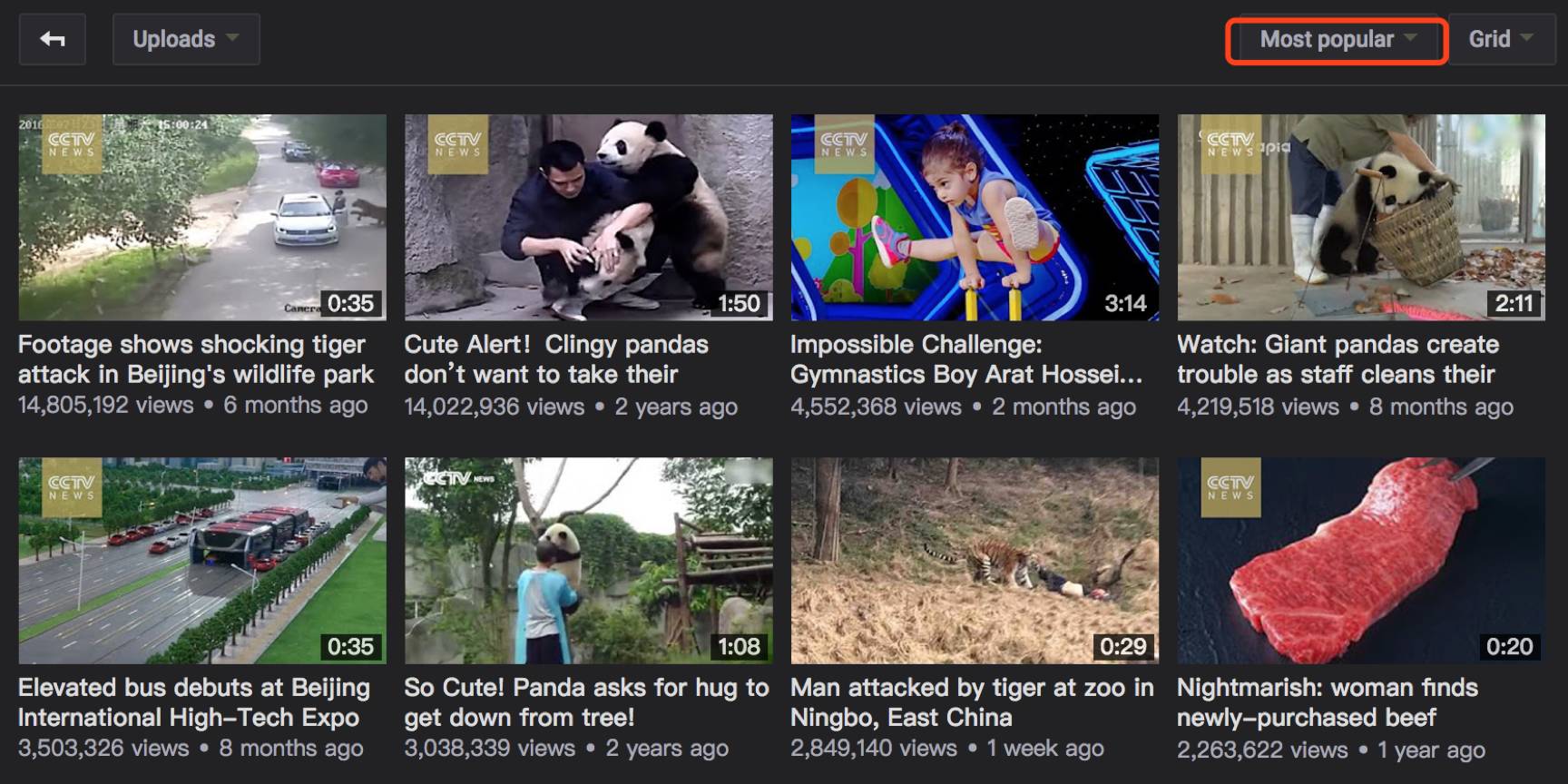 在CGTN英语YouTube账号上,点击最高的视频是北京八达岭野生动物园老虎伤人事件(1481万次)以及我国天然形象大使滚滚君的可爱视频(1402万次)。陷入造假迷雾的“巴铁”的宣传片点播次数也不少(350万次)。
