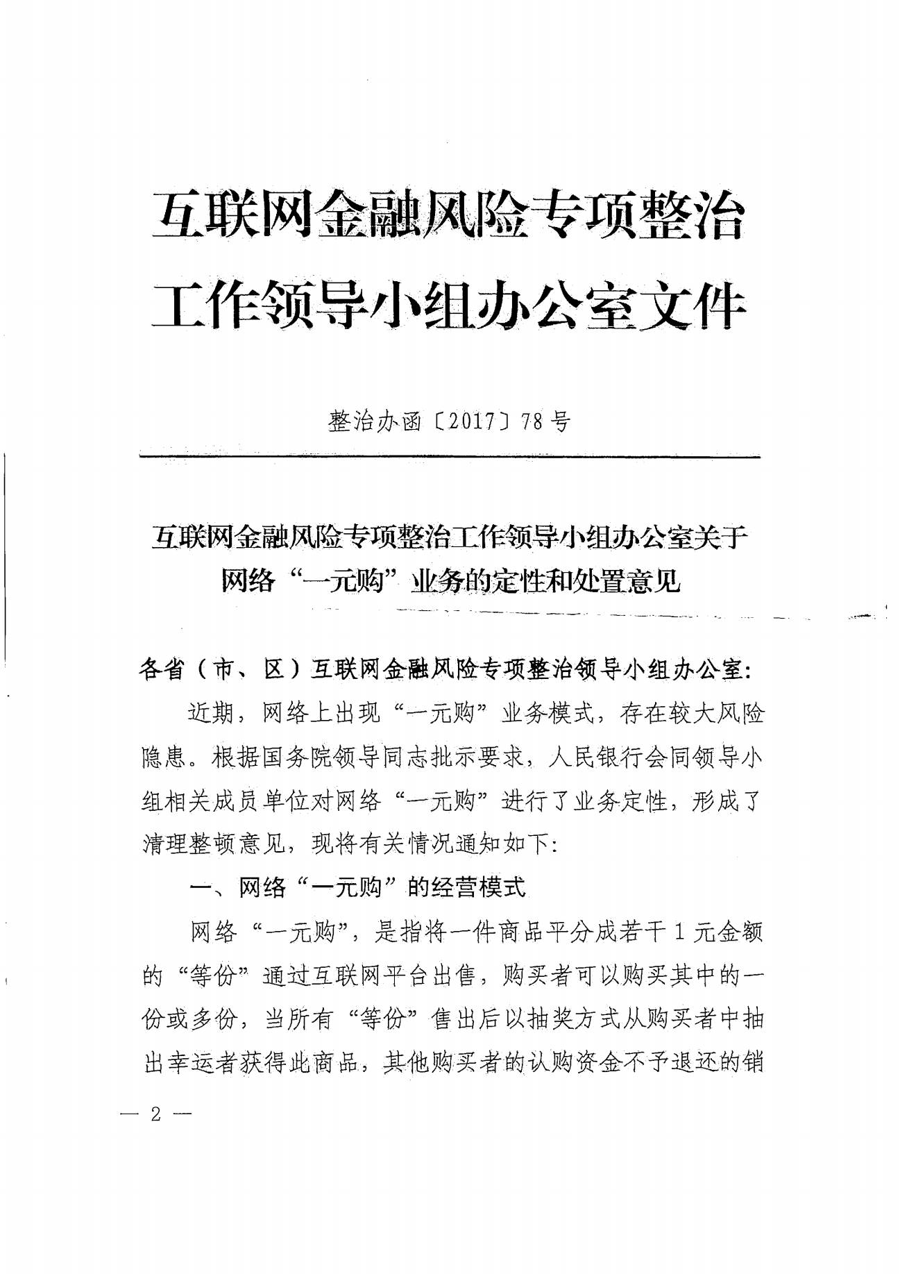 附:《关于网络“一元购”业务的定性和处置意见》全文