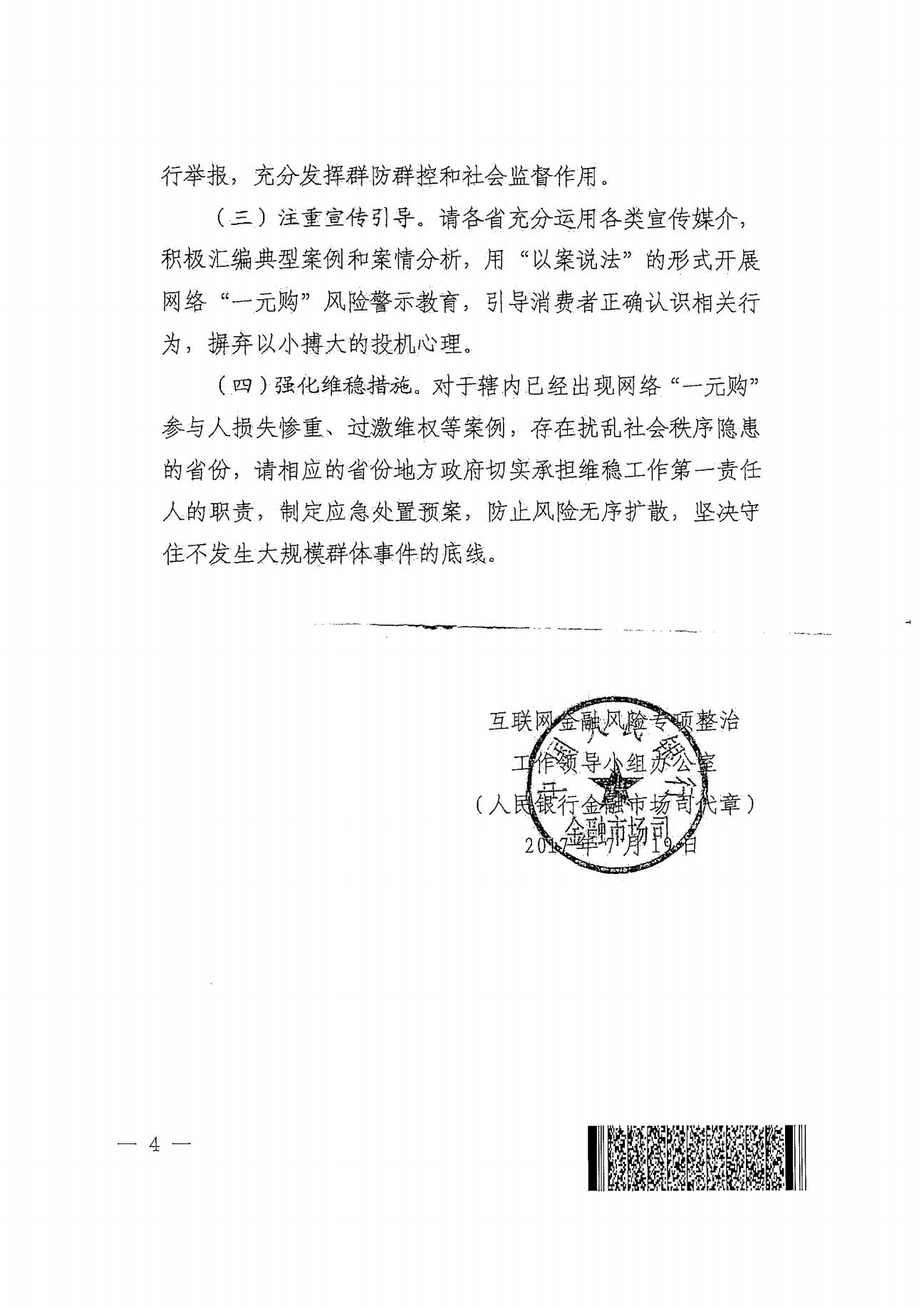 《意见》指出,网络“一元购”尽管极个别购买者存在侥幸获取较大利益的机会,绝大部分投资者都将承担损失全部本金的风险。