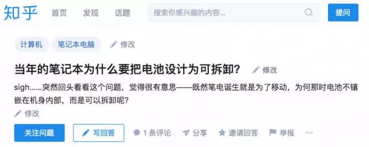 随着时代的推移,现在普遍内置不可替换电池的机器,修理电池必须拆机,成本大幅推高。如今电池已经成为影响到整机寿命的最关键因素之一,即使其他功能正常,如果电池废了,只能外接电源才能使用的笔记本,也跟瘫痪没有什么太大区别。