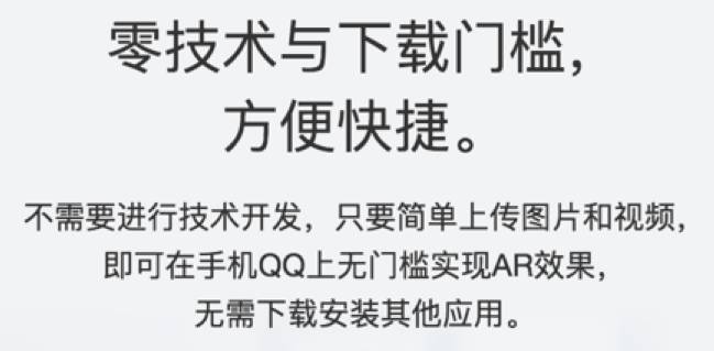 QQ-AR对商户或个人用户来说,可能是目前最友好的一家。这与其AR呈现形式支持2D视频或平面不无关系。普通的开发者仅提交视频或平面材料,在热点位置播放就可以。这可能是门槛最低的AR实现形式。也有助于快速验证模式,评估投放效果,降低试错成本。