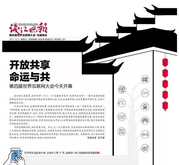 在去年乌镇互联网大会期间,《钱江晚报》专刊的头版设置了QQ-AR扫描热区,可以播放一段动画让报纸“动起来”。这是QQ-AR与传统媒体结合营销的又一个典型案例。