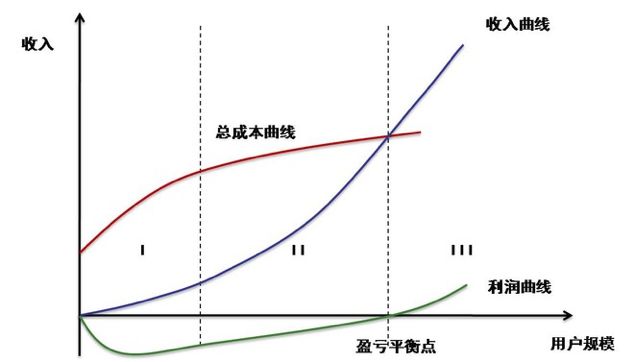 一个经典的互联网公司增长曲线,一般会经历三个阶段:从初创阶段(大量的研发、硬件投入,几乎可以忽略的收入)到成长阶段(用户的快速增长,将利润用于补贴市场和用户,以加速进入头部)再到成熟阶段(用户增速放缓但收入增速较快,开始实现大规模盈利)。这个过程中,可变成本极低是一个显著特征,也是互联网公司备受追捧的价值所在。