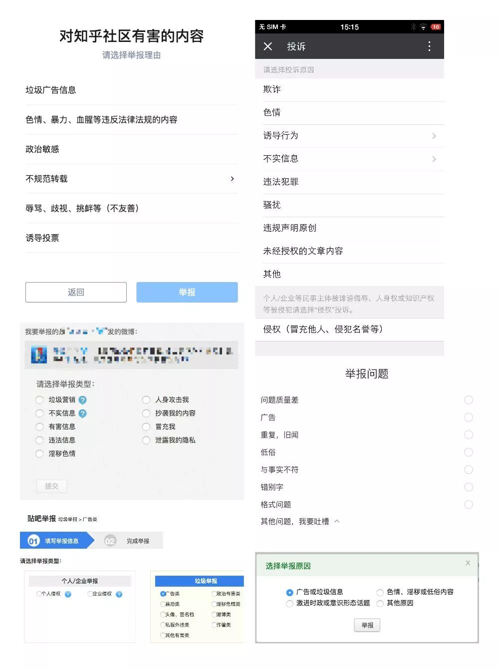 你可能很难注意到隐藏在微博帖子、微信菜单、知乎文章等地的“举报”按钮,但实际上“举报”无处不在。