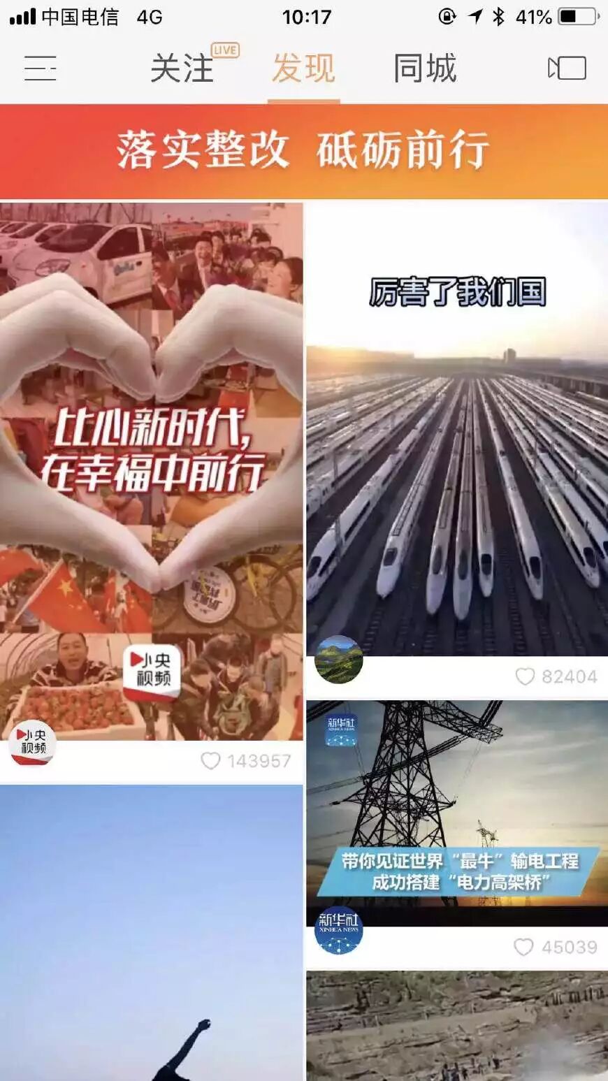而今天,这样迎合市场需求并得到验证的产品设计,出现了意想不到的苦果:快手以及模仿其产品设置的火山和抖音,根本没有其他空余地方专门放置“新时代”视频,以满足监管需要。他们只能乖乖把唯一的主信息流让出来。