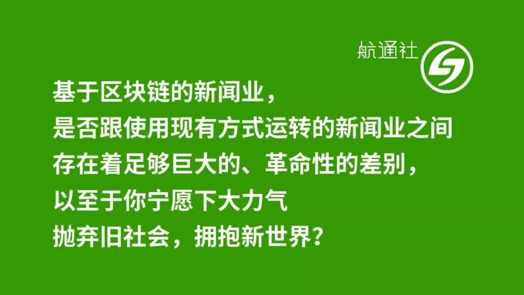 基于区块链的新闻业,是否跟使用现有方式运转的新闻业之间,存在着足够巨大的、革命性的差别,以至于你宁愿下大力气抛弃旧社会,拥抱新世界?