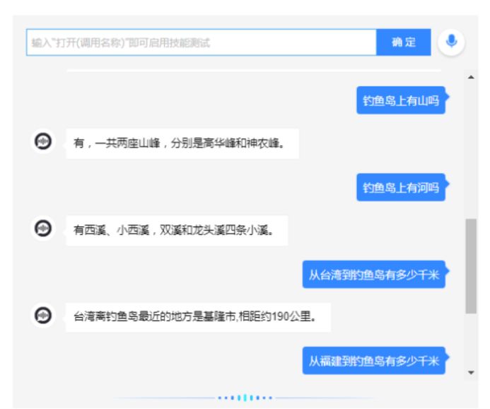 通过百度云提供的存储空间,和系统提供的默认函数模板稍微修改,“照葫芦画瓢”地就可以实现基本的问答逻辑功能了。该“钓鱼岛万事通”的调试结果如下: