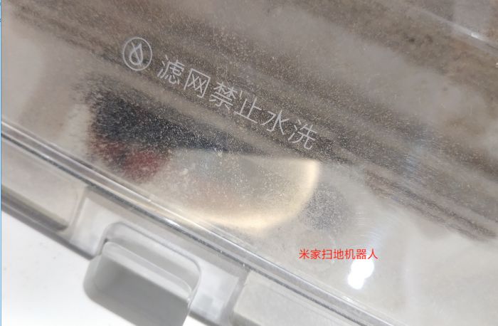 石头扫地机器人已经提示滤网可以水洗,但需要晾干之后再用,相比之下米家扫地机器人的提示是滤网不可水洗。此外,在尘盒旁边还附带了一个方便清理滤网的毛刷。