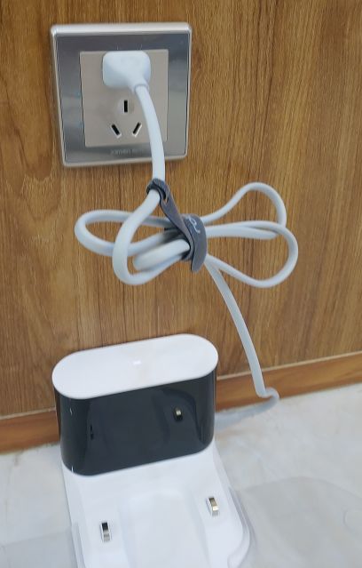而这次在充电座的线缆方面,也提供了一个可以用来将电源线绑好的绑绳。这样,电线多余的部分就可以悬空,防止机器人在清扫的时候绊倒。