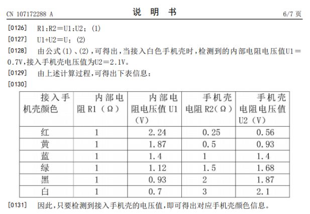 该专利假设,不同规格的手机壳在装到手机上之后,会引起手机耳机接口、USB接口等外露的部分,在电阻上的细微改变。而这种改变是相对稳定的。