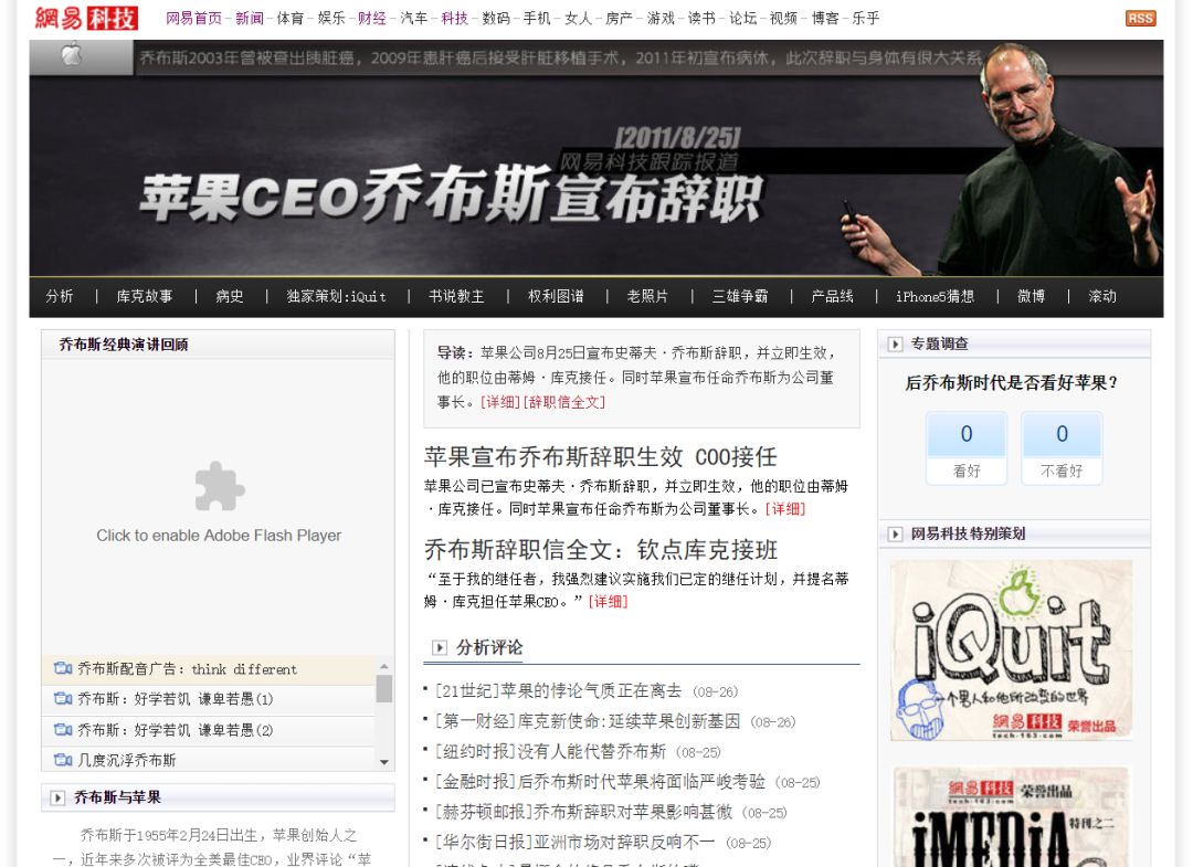 2011年国庆假期,正在上海出游的我赶上了乔布斯去世,但当时做专题并没有特别费力气,因为可以直接套用大概半年前乔布斯宣布要退休的专题,只需要把专题页面的标题改一改,加入一些新内容就可以重新上线了。这正是现在公众号的操作手法。