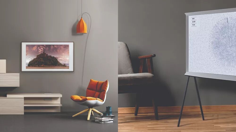 今年,三星将进一步把电视机朝着做成“艺术品”的奇怪方向进化,将展示 The Frame 画框电视以及 Serif 画架电视。顾名思义,一个具备书画装裱留下的宽大白边,以及平滑的玻璃表面,就像是一个标准的艺术品画框一样,可以镶嵌在墙面上合适的位置;另一个则有简约的三脚架支撑,展开合适的角度,在“画布”上呈现图像。