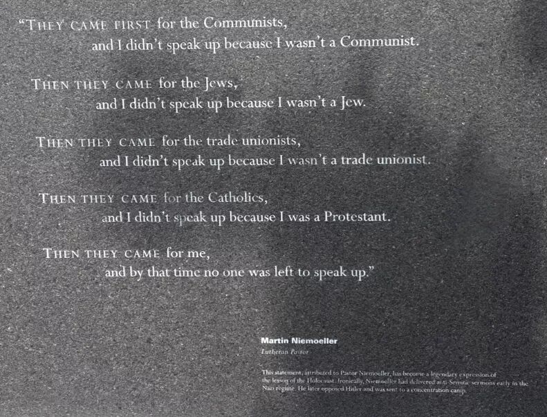 克鲁兹甚至在一次保守派集会上引用了马丁·尼莫拉的名诗《起初他们……》并将琼斯比作最初的殉道者:“‘起初他们来找亚历克斯·琼斯’……这不是什么好事。” [8]