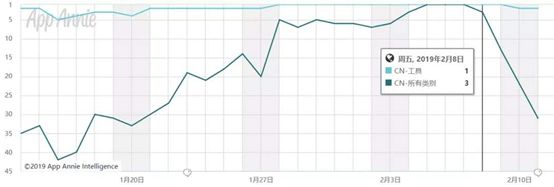 只不过,看下“多闪”App春节期间的iOS排名走势(App Annie)就知道它还是缺乏后劲: