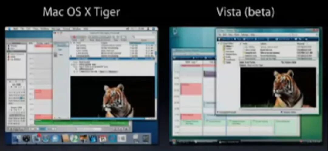 另一方面,这也是个“面子”问题。苹果曾在 WWDC 2006 公开取笑微软当时的旗舰新系统 Windows Vista 借鉴模仿了大量 Mac OS X 累积更新功能,如 Spotlight、Safari RSS 阅读器、独立的邮件和日历应用等。[9]