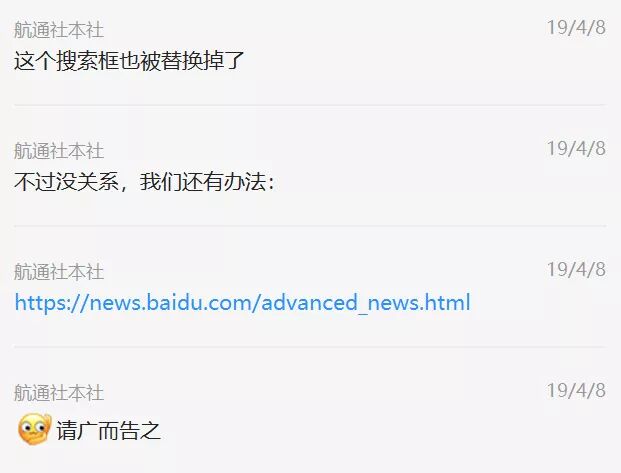 5 月 3 日,这一“高级搜索”页面也被干掉,老版“新闻搜索”只能通过手动添加搜索引擎代码的方式继续使用。