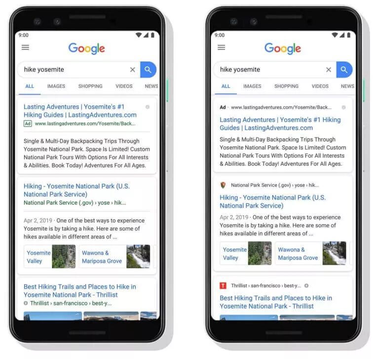 谷歌表示,在之前几个月测试新版面的时候,大多数用户认为这种新的布置可以更容易的辨别不同的网站。超过 2/3 的人认为,可以在快速翻阅搜索结果时,清晰的扫描和定位到想要的位置。