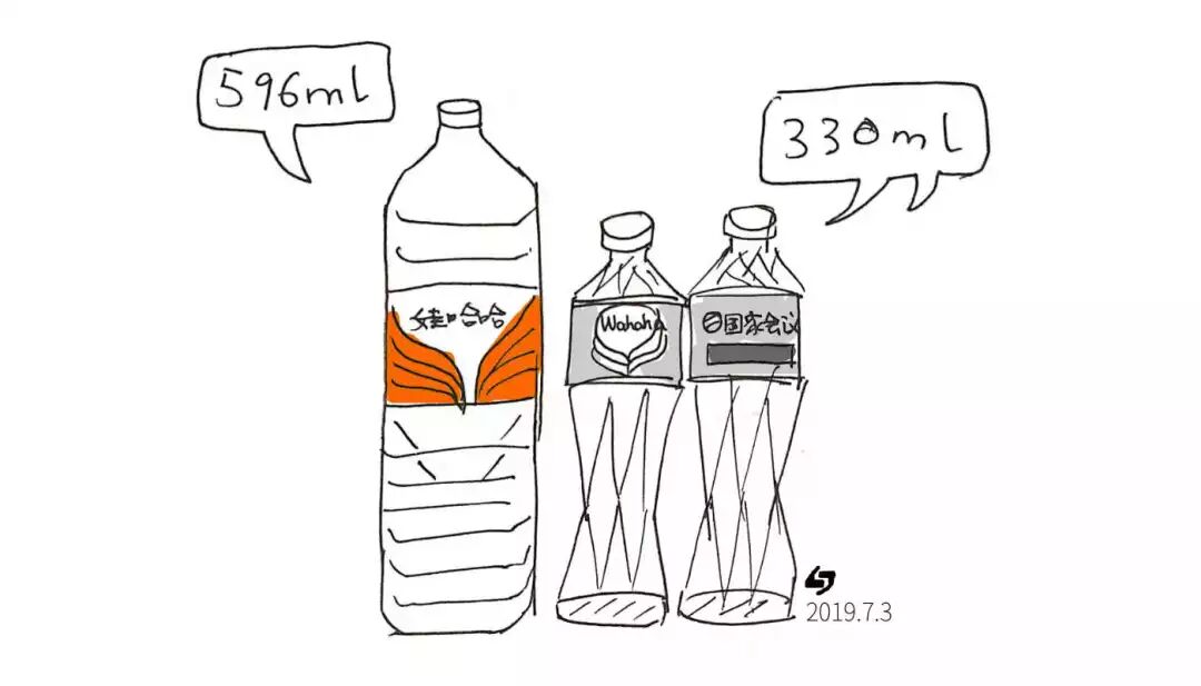 有很大的概率,这瓶怡宝并非来自会场内部。虽然大型展会都会有免费的饮用水可以领取,但在国家会议中心,你一般能拿到的是这种小瓶装的娃哈哈纯净水: