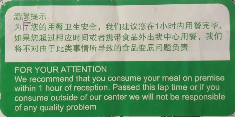 在这种前提下,想近身上前再掏出什么凶器怕是不太容易了;似乎除了去会场旁边的卫生间“自制”之外,这人可以泼的也只有纯净水和其它可以吃的东西。——请注意,外部的外卖一般是不允许带进会场的;提示就贴在一楼门口的玻璃上。