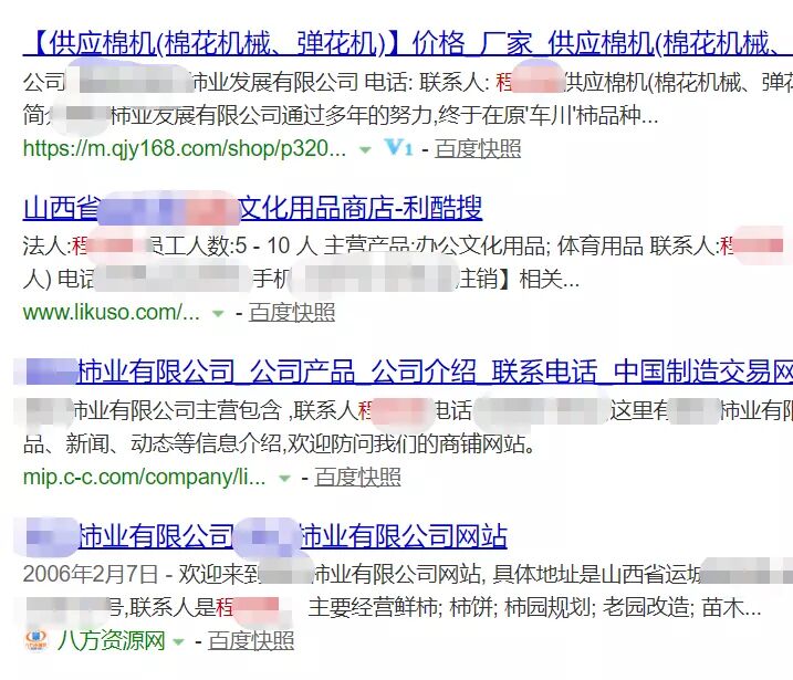 可以看到搜索结果只有两页,固定在几个特定的商户名称上。神奇的是,所有这些结果指向的所在地也都是山西运城附近。