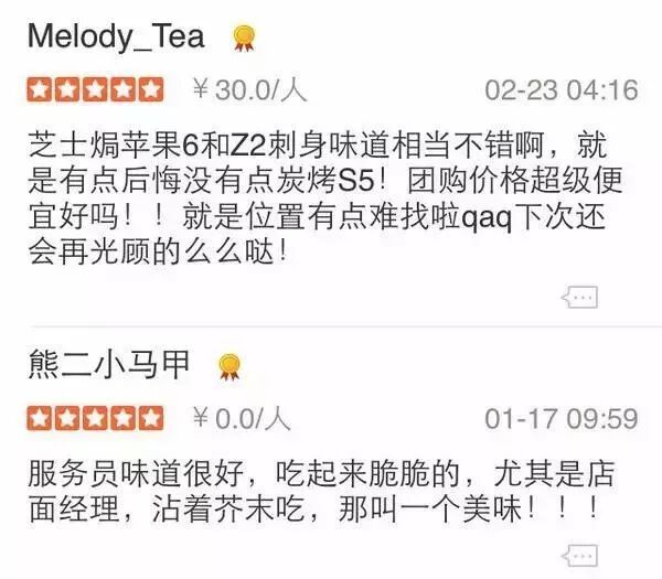 即使如此,还想要在就餐后特意评价一下的,必然是抱有特别强烈的情绪。所以除去“刷”和“段子手”的评价不是特别好,就是特别差。而且可想而知,特意上来发差评的会多于发好评的,以至于将差评当作一种投诉手段。