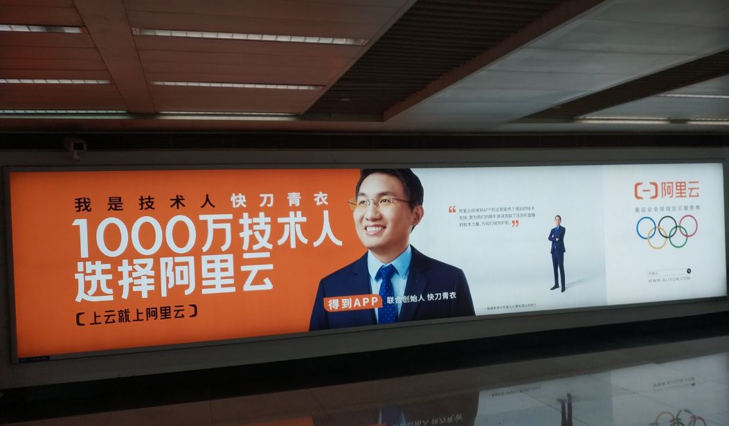 飞机降落在萧山机场,阿里云几乎在每个城市都有广告牌,都会选择这个城市的创业者,那么在它的老家的广告牌说的是……