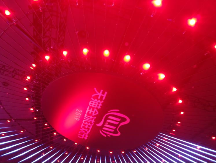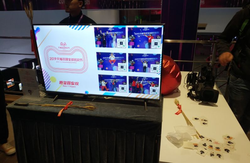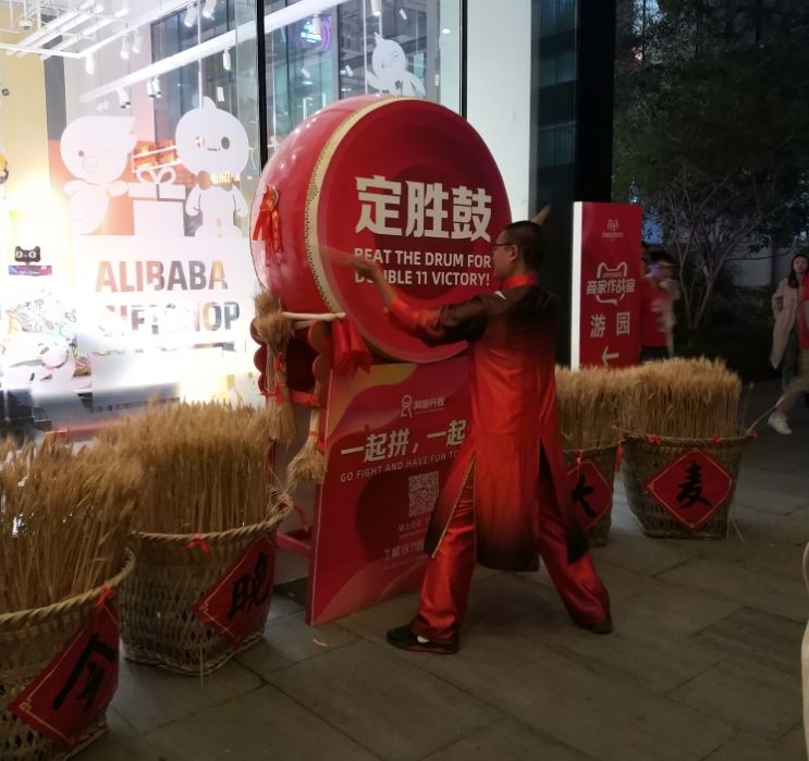 第二个意象是定胜鼓,在大门口敲的小伙伴是专业的,鼓点轻重相间,十分流畅。很多记者举起手机想录下全程,但无奈只能继续往前走。但在每个商家作战室和部门都有鼓,某个目标达成了就乱敲一气庆祝一下。