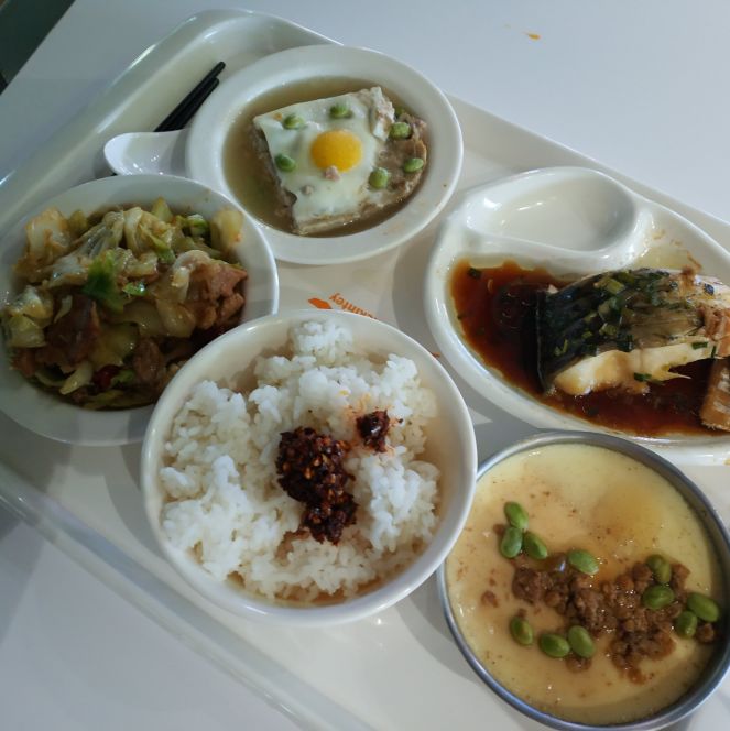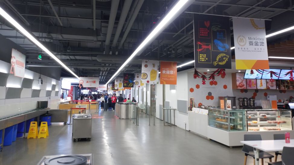 麦金地餐厅是西溪园区最受好评的阿里员工餐厅,招牌菜之一是图上的广式烧腊饭,而最实惠的选择是下图所示的档口打饭。我们到达园区的第一餐就选择在食堂进行,借此感受阿里小二们的工作气氛。