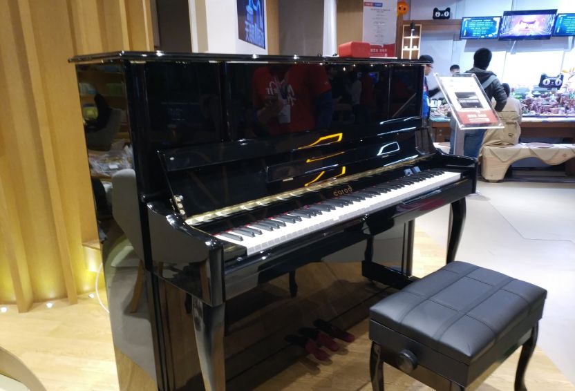 在同一楼层的“初心茶社”里,一台在自动弹奏的钢琴受到上面红色的定制款天猫精灵控制。