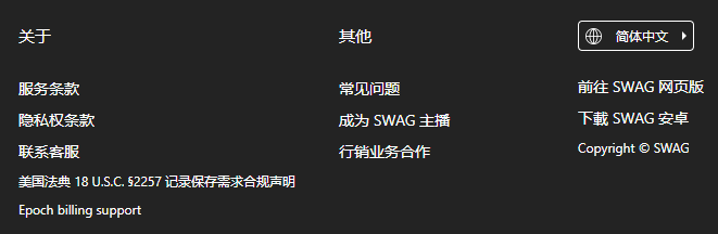 实际上,刚才新闻里面提到的 swag,是一款颇为流行的手机直播 App。它的主要市场是台湾地区,但主页却特意标明产品受到美国法律的管辖。