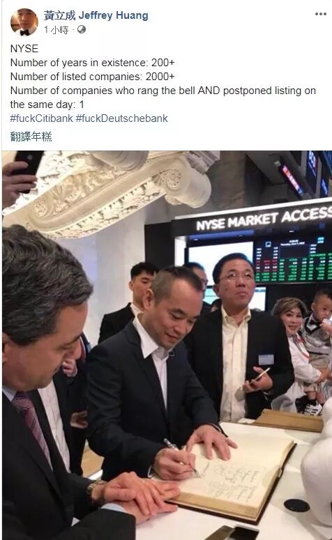 万万没想到,6 月 6 日挂牌以后连续 4 天,M17 居然没有任何一次成交记录。最后 M17 不得不撤销上市。这导致公司白花了 1 亿元新台币,创始人、艺人黄立成气得在 Facebook 破口大骂花旗和德银两家承销商。