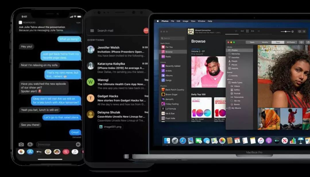 2019年,苹果的iOS13、macOS Mojave及更高版本,和Android Q操作系统一起,将黑暗模式带到了手机屏幕。而上一年 Windows 10 的一次更新,已经将黑色界面带入了PC。