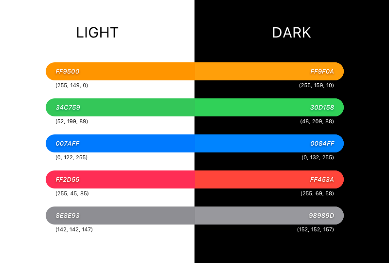正如阿里巴巴UED的一篇文章所指出的,要充分的运用黑色模式,就不仅仅是将底色调为灰黑色,将前景色调为白色那么简单。实际上在低对比度的情况之下,几乎每一种在亮色模式之下的色彩,都需要被重新设计。