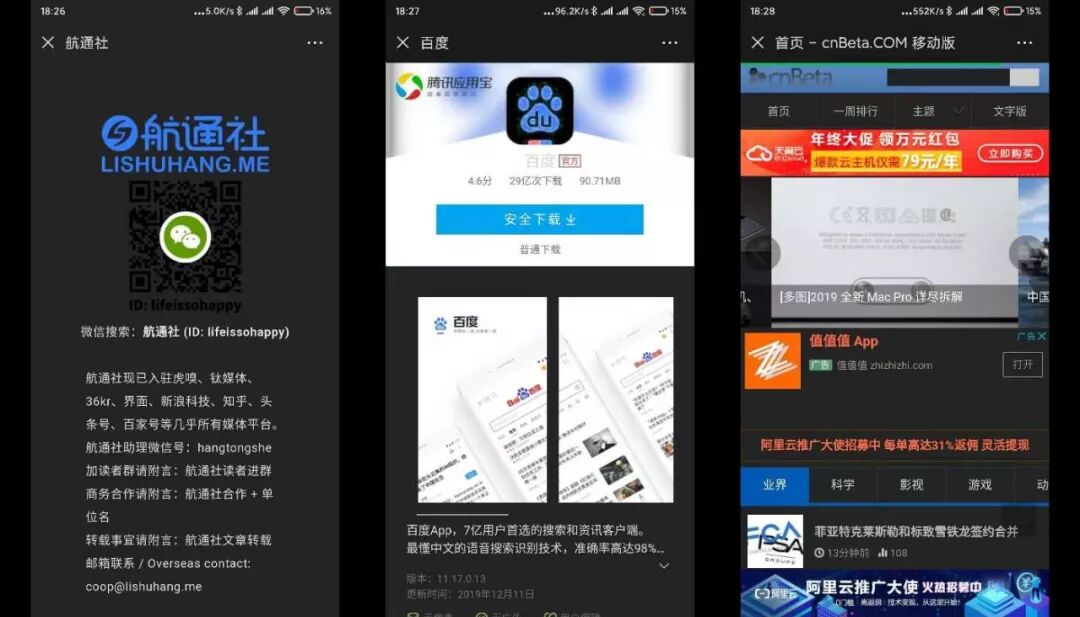 今天上午,用微信打开公众号文章和外部网页,内嵌浏览器还没有做深色适配;到下午撰稿时,浏览器已经对大多数网站开启了深色适配。当然,我们可以看到问题依然存在。