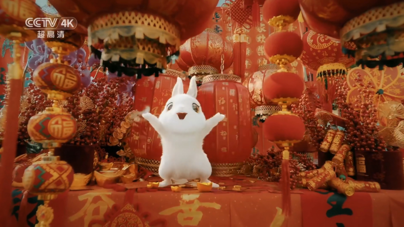 一张AI生成的图到最后能使用的商业IP,还包括其他复杂的过程,例如将其三维化,应用在片头、虚拟棚等不同的场合。兔年的春晚吉祥物“兔圆圆”在晚会片头动画当中,是以一个完全3D建模的形象出现的,包括全身的位置都做了相关渲染。