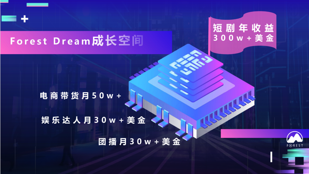 Forest Dream帮助网红指定内容优化策略,做短视频和直播来变现,还提供专业化发展和学习机会。