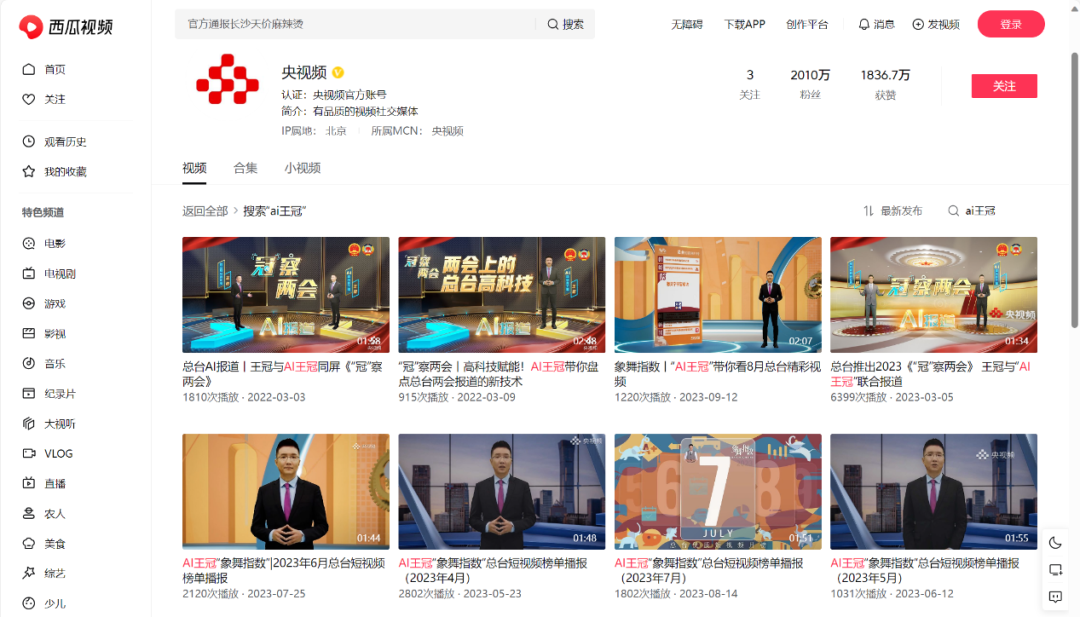 通过创建AI虚拟主播,应用到新媒体日常新闻播报、两会重点项目,以及商业化项目等场合,“AI王冠”填补了内容生产的空白,加速了新闻制作过程,在节省资源的同时,保持了内容的质量稳定。“AI王冠”在央视频的账号有近6000粉丝和超780万总播放量。目前,同样的技术已经在CGTN等总台更多部门应用和铺开。