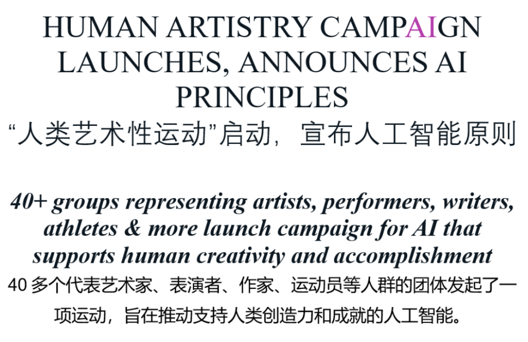 他的回复以及UMG更多场合的表态,都符合该公司及旗下艺人团体去年3月发起的“人类艺术倡议”(the Human Artistry Campaign)。其核心是政府不应该给AI生成的内容添加太多的例外情形。只有人类生成的艺术作品才有资格获得版权保护。