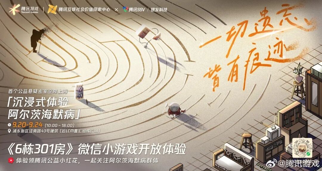 腾讯游戏:为唤醒公众对于阿尔兹海默病的关注和重视,上线了一款名为《6栋301房》的公益游戏。